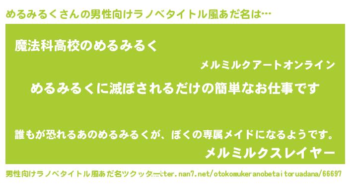 | 意味不明あだ名 | 『自称めるみるく』『ペロリンめるみるく』 |
