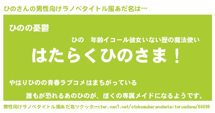 | 胡散臭い通販商品みたいなあだ名 | 『必ず成功するブレスレット…その名も「ひの」』 |