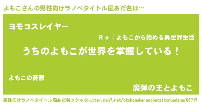 | ヒーロー風カッコイイあだ名 | 『仮面ヨモダー』『超時空戦士ヨモコ』 |