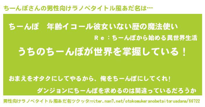 | ヘコむあだ名 | 『ちーっちょ』『ちーんぽ(小並感)』 |