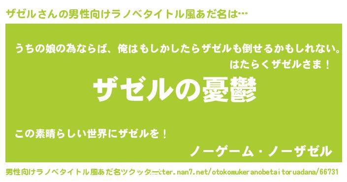 | 女子向けラノベタイトル風あだ名 | 『(仮)ザゼルのやんごとなき事情』 |