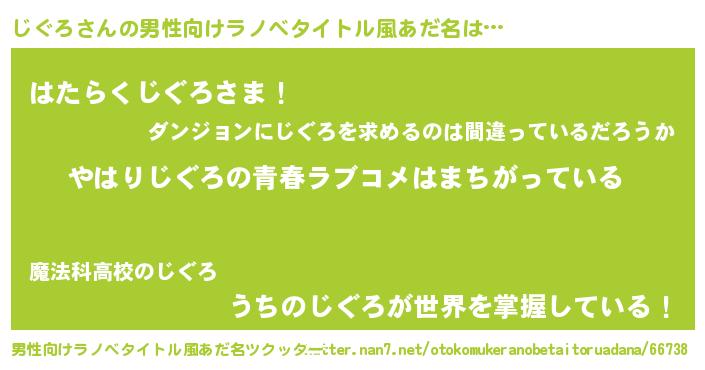 | 女子向けラノベタイトル風あだ名 | 『じぐろの雑貨屋さん』 |