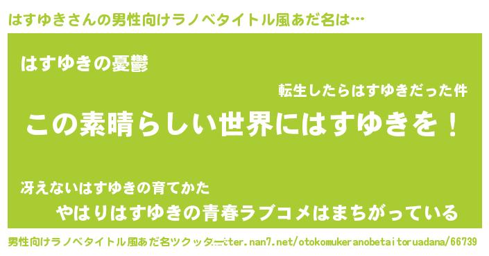 | 胡散臭い通販商品みたいなあだ名 | 『あなたにだけ特別に提供する100年もののヴィンテージワイン…その名も「はすゆき」』 |