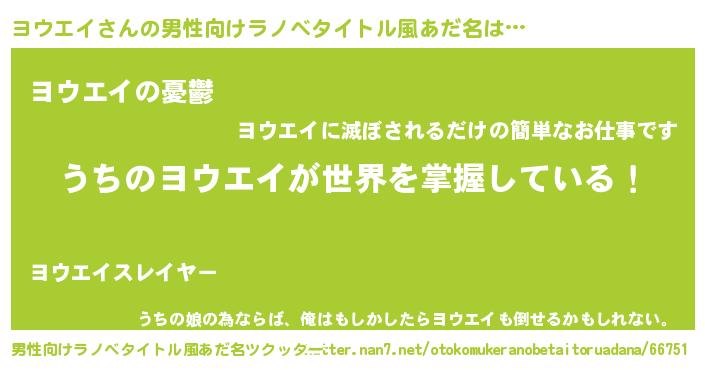 | 女子向けラノベタイトル風あだ名 | 『男装ヨウエイの憂鬱な任務』 |