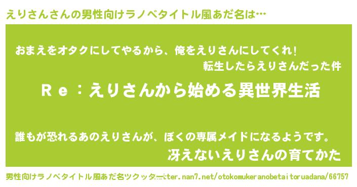 | 女子向けラノベタイトル風あだ名 | 『えりさんストレイドッグス』 |