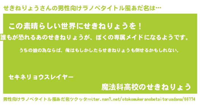 | 女子向けラノベタイトル風あだ名 | 『せきねりょうの婚約者』 |