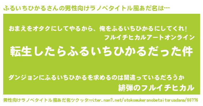 | 女子向けラノベタイトル風あだ名 | 『ふるいちひかるの玉の輿計画!』 |