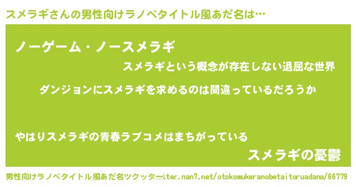 | ヒーロー風カッコイイあだ名 | 『暗黒騎士スメ』『慈愛の使者スメラギ』 |