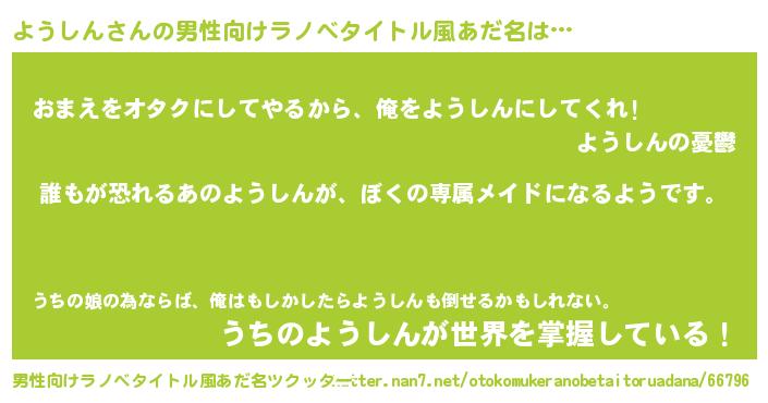 | ヒーロー風カッコイイあだ名 | 『ネオヨウシン』『愛の使者ようしん』 |