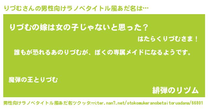 | 女子向けラノベタイトル風あだ名 | 『りづむの契約王妃』 |