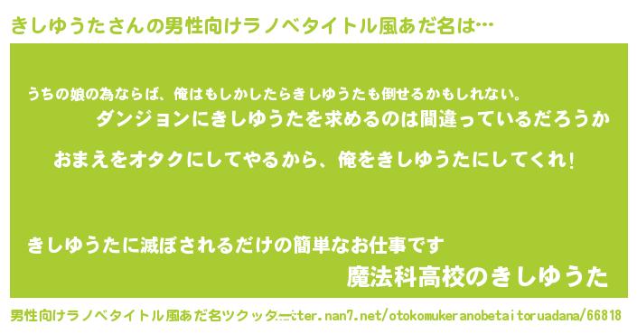 | 女子向けラノベタイトル風あだ名 | 『きしゆうた夫妻のなれそめ』 |