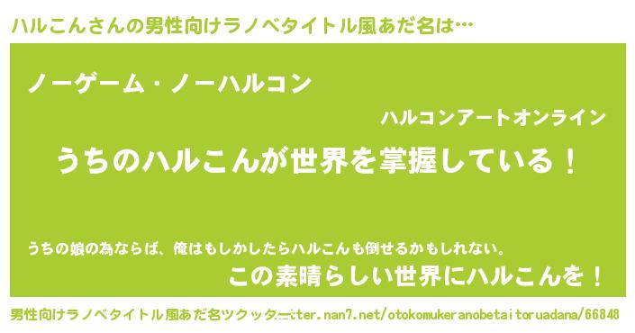 | 伝説のあだ名 | 『救世主となる錬金術士ハルこん』 |
