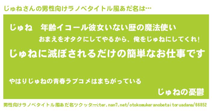 | 胡散臭い通販商品みたいなあだ名 | 『億万長者になれる水晶球…その名も「じゅね」』 |