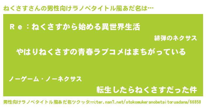 | ヒーロー風カッコイイあだ名 | 『ウルトラねくさすマン』『仮面ネクダー』 |