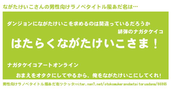 | ポケモン風あだ名 | 『ナガゴンZ』『ヒナガタケイコ』 |