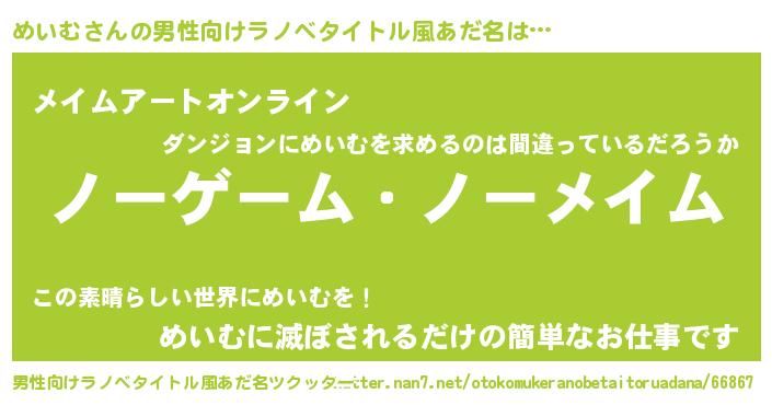 | 伝説のあだ名 | 『救世主となる技術者めいむ』 |