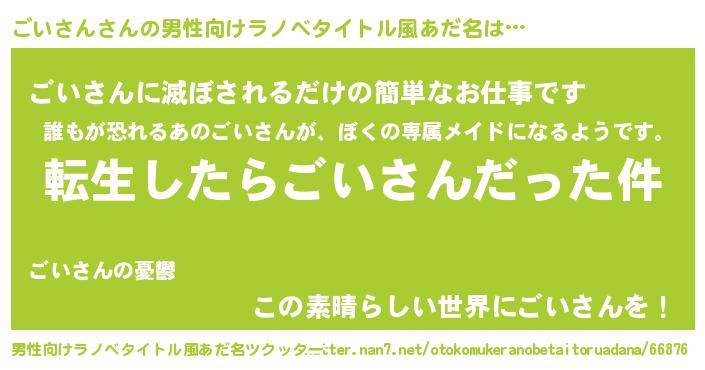 | 胡散臭い通販商品みたいなあだ名 | 『世界中を虜にした100年もののヴィンテージワイン…その名も「ごいさん」』 |