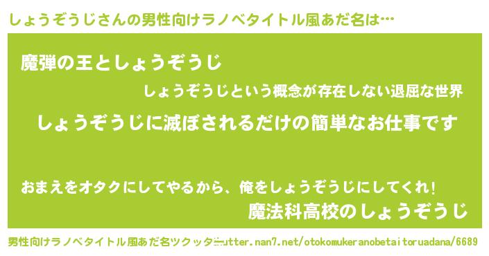 | 意味不明あだ名 | 『住所不定無職しょうぞうじ(2歳)』 |