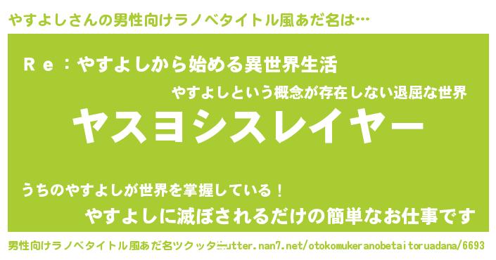 | ヒーロー風カッコイイあだ名 | 『超時空戦士ヤスヨシ』『ネオヤスヨシ』 |