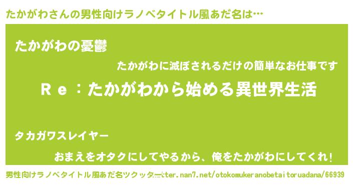 | ヒーロー風カッコイイあだ名 | 『サイバー戦士タカガワ』『ネオタカガワ』 |