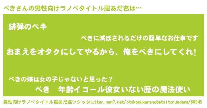 | 女子向けラノベタイトル風あだ名 | 『べき夫妻のなれそめ』『べき様がみてる』 |