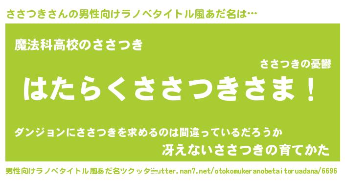 | ヒーロー風カッコイイあだ名 | 『超時空戦士ササツキ』『銀牙騎士ササ』 |