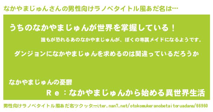 | 女子向けラノベタイトル風あだ名 | 『なかやまじゅんは平凡を望む』 |