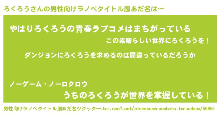 | 女子向けラノベタイトル風あだ名 | 『ろくろうは平凡を望む』 |