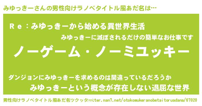 | 女子向けラノベタイトル風あだ名 | 『みゆっきー恋絵巻』『闇のみゆっきー』 |