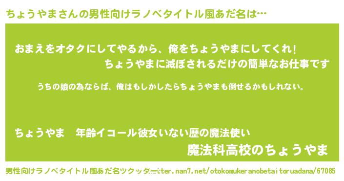 | ファンタジー風あだ名 | 『エターナルチョウヤマー』『ゼチョトゥ』 |