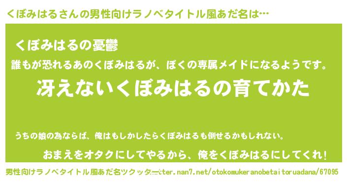 | 意味不明あだ名 | 『ペロリンくぼみはる』『自称くぼみはる』 |