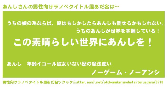 | 女子向けラノベタイトル風あだ名 | 『悪役あんしに転生したようですが、知った事ではありません』 |
