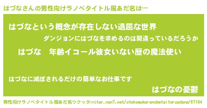 | 女子向けラノベタイトル風あだ名 | 『はづなの玉の輿計画!』 |