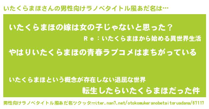 | 女子向けラノベタイトル風あだ名 | 『いたくらまほ伯爵の花嫁』 |