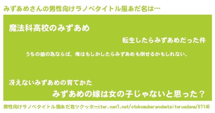 | 女子向けラノベタイトル風あだ名 | 『みずあめの婚約者』 |