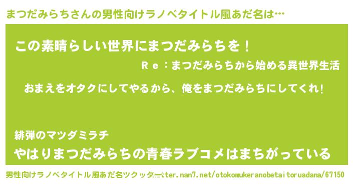| 胡散臭い通販商品みたいなあだ名 | 『100人中100人が認めたイリジウム磁石…その名も「まつだみらち」』 |