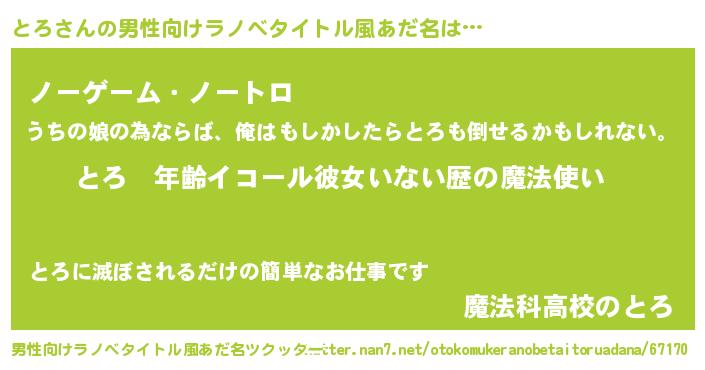 | 伝説のあだ名 | 『救世主となる技術者とろ』 |