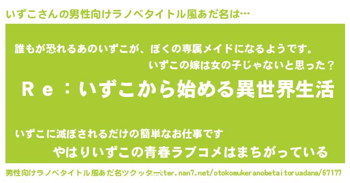 | 女子向けラノベタイトル風あだ名 | 『いずこストレイドッグス』 |