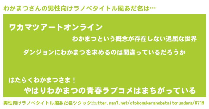 | 女子向けラノベタイトル風あだ名 | 『わかまつの卵を拾いまして』 |