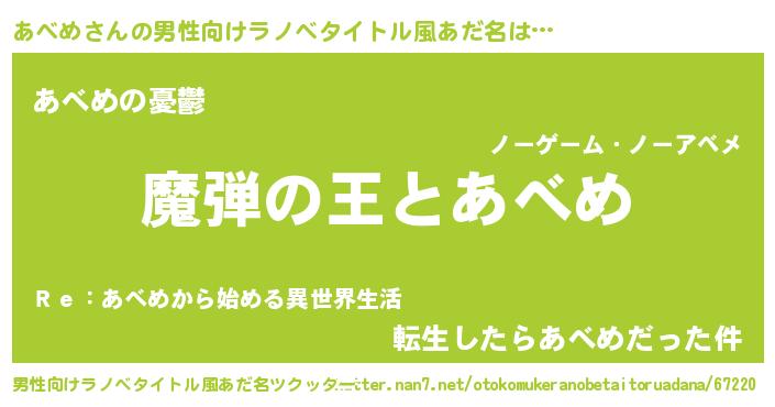 | 女子向けラノベタイトル風あだ名 | 『あべめが死なない童話 林檎のあべめの診療簿』 |