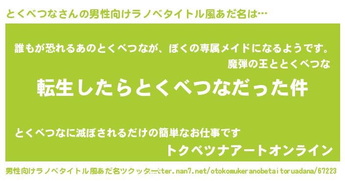 | ファンタジー風あだ名 | 『ユリトクヴァット』『トクディッシュ』 |