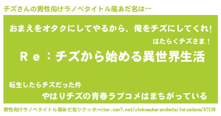 | 女子向けラノベタイトル風あだ名 | 『闇のチズ』『チズ夫妻のなれそめ』 |