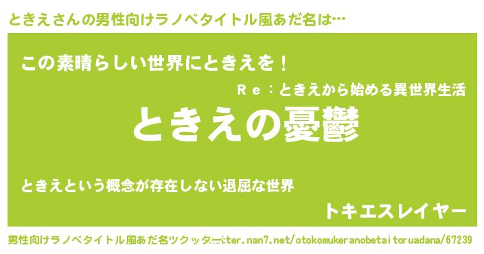 | 女子向けラノベタイトル風あだ名 | 『(仮)ときえのやんごとなき事情』 |