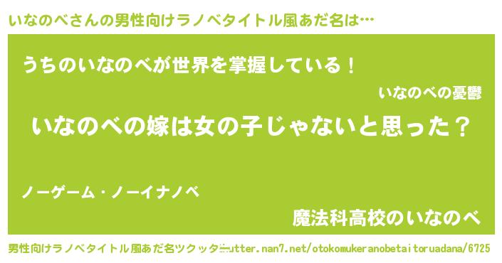 | 女子向けラノベタイトル風あだ名 | 『いなのべの卵を拾いまして』 |