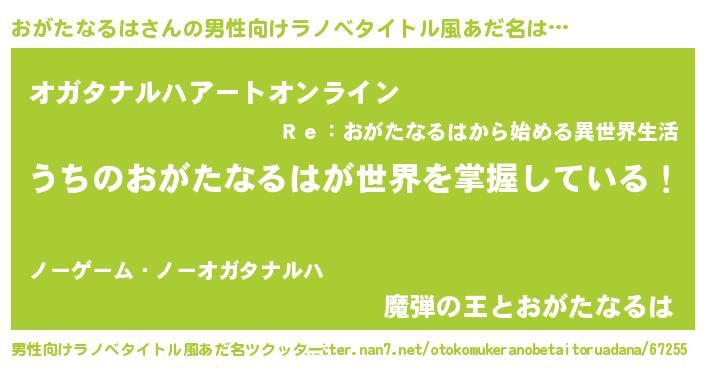 | 女子向けラノベタイトル風あだ名 | 『男装おがたなるはの憂鬱な任務』 |
