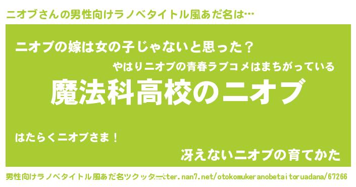 | ヘコむあだ名 | 『ニオぷりん』『牛乳』『ニオブ(笑)』 |