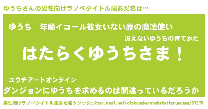 | ヒーロー風カッコイイあだ名 | 『魔戒騎士ユウ』『スーパーユウチ』 |