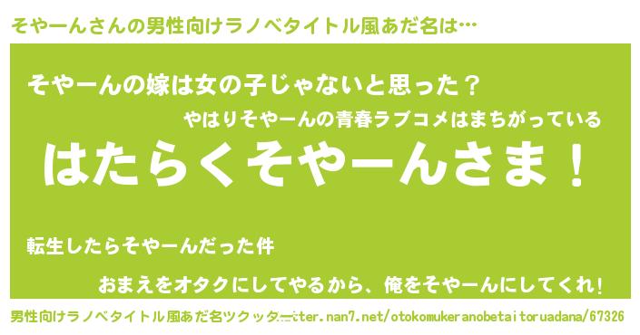 | ヒーロー風カッコイイあだ名 | 『暗黒騎士ソヤ』『愛の使者そやーん』 |