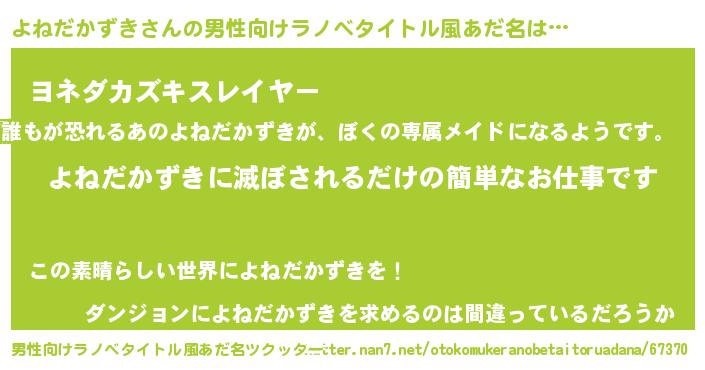 | 意味不明あだ名 | 『なめこ科よねだかずき属』 |