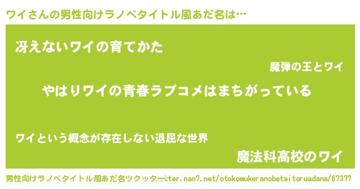 | ヒーロー風カッコイイあだ名 | 『ウルトラワイマン』『サイバー戦士ワイ』 |